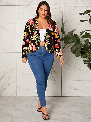 WDIRARA Women's Plus Size Floral Open Front Scallop Trim Long Sleeve Jacket Outerwear 1
