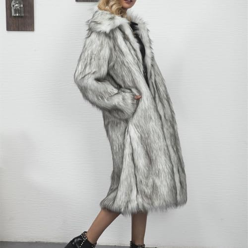 HOT ! ZHOUYF Faux Fur Soft Coats for Women Winter Lapel Cardigan Shaggy Outerwear Warm Chunky Long Jackets with Pockets