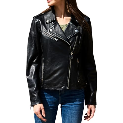 HOT ! Leather Jacket Women | Premium Lambskin Leather Asymmetric Zipper Lapel Notch Collar Motorcycle Jacket