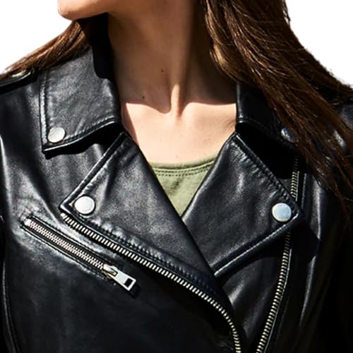 Leather Jacket Women | Premium Lambskin Leather Asymmetric Zipper Lapel Notch Collar Motorcycle Jacket 7