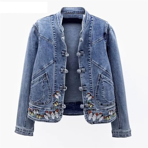 Generic Women's Short Denim Jacket Vintage Embroidered Stretch Jacket Spring Autumn Slim Tops 5