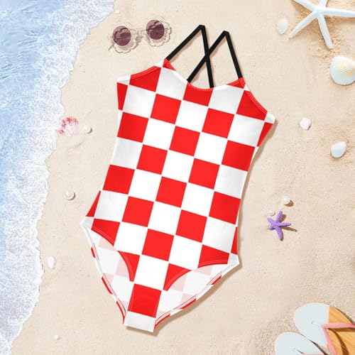 HOT ! Augenstern One-Piece Strap Swimsuit Classic-red-White-Checkered Cross Back Bathing Suit Adjustable Monokini
