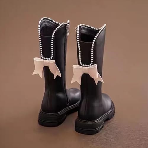 More information about Girls Cowboy Boots Leather Round Toe Side Zipper Mid Calf Booties Bow Knot Riding Winter Tall Boots