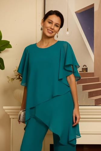 2 Pieces Mother of The Bride Pant Suits for Women Dressy Chiffon Sets Ruffle Layers Formal Wedding Guest Outfit 6
