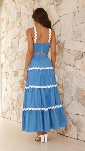 More information about utcoco Womens Skirt Sets 2 Piece Outfits Wave Stripe Sleeveless Cropped Tank Top High Waisted Maxi Skirt Set