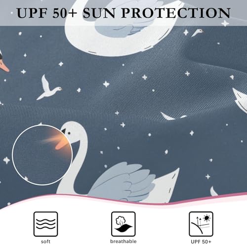 Swan Dark Background Girls Long Sleeve Swimsuit Rash Guard One Piece Bathing Suits Zipper 3-12T 5