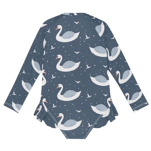 Swan Dark Background Girls Long Sleeve Swimsuit Rash Guard One Piece Bathing Suits Zipper 3-12T 4