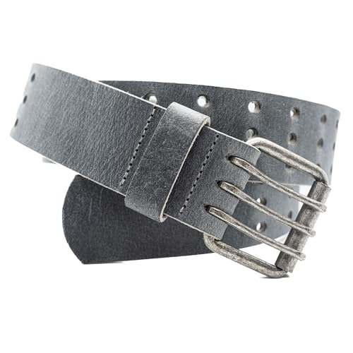 Full Grain Buffalo Leather 3-Hole Three Prong Casual Jeans Belt 1.75 inches (45mm) Wide - Slate Gray 7