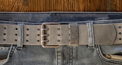 Full Grain Buffalo Leather 3-Hole Three Prong Casual Jeans Belt 1.75 inches (45mm) Wide - Slate Gray 5