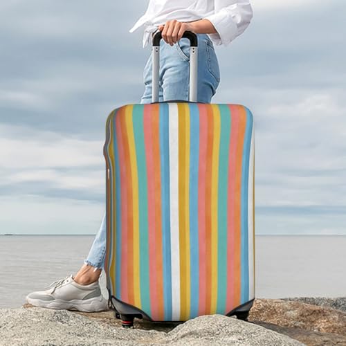 Summer Striped Fabric Vertical Stripes Elastic Travel Luggage Covers Dustproof Scratch-Resistant Suitcase Protector Fit 22-24 Inch 4