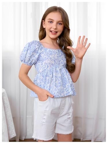 Why Choose OYOANGLE Girl's Floral Print Square Neck Tops Puff Sleeve Cinched Waist Blouses?