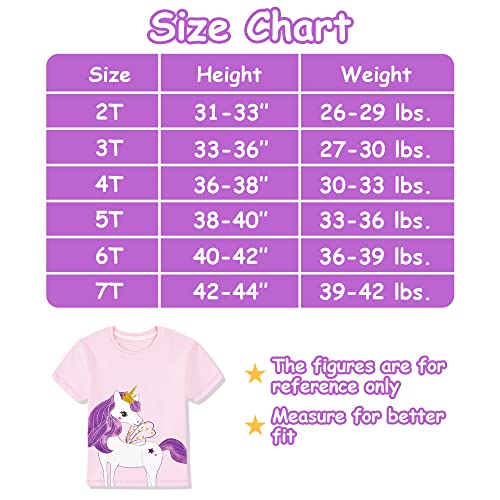 Toddler Girls Short Sleeve Shirts Unicorn Graphic Cotton Shirt Tee Summer T-Shirts for Girls 2-7 Years 6
